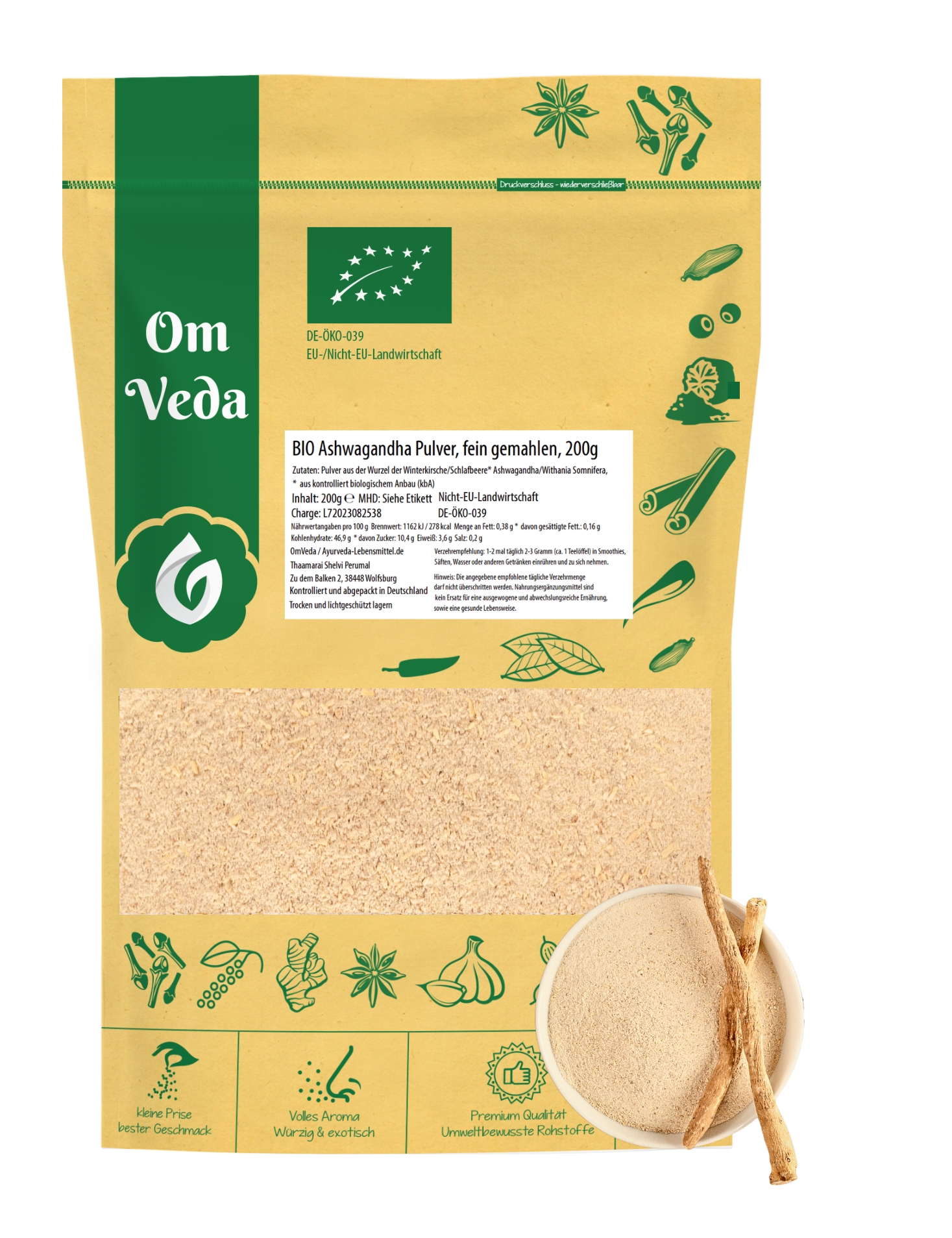 Kraft des Ashwagandha-Pulvers: Dieses vielseitige Pulver ist ein ayurvedisches Gewürz und bietet zahlreiche Vorteile. Ob Sie es in einem köstlichen Smoothie, einer Tasse Tee oder als Zutat in Ihren Lieblingsgerichten verwenden, Ashwagandha-Pulver kann Ihnen helfen. Probieren Sie es jetzt aus und erleben Sie die Vorteile von OmVeda Ashwagandha-Pulver selbst!