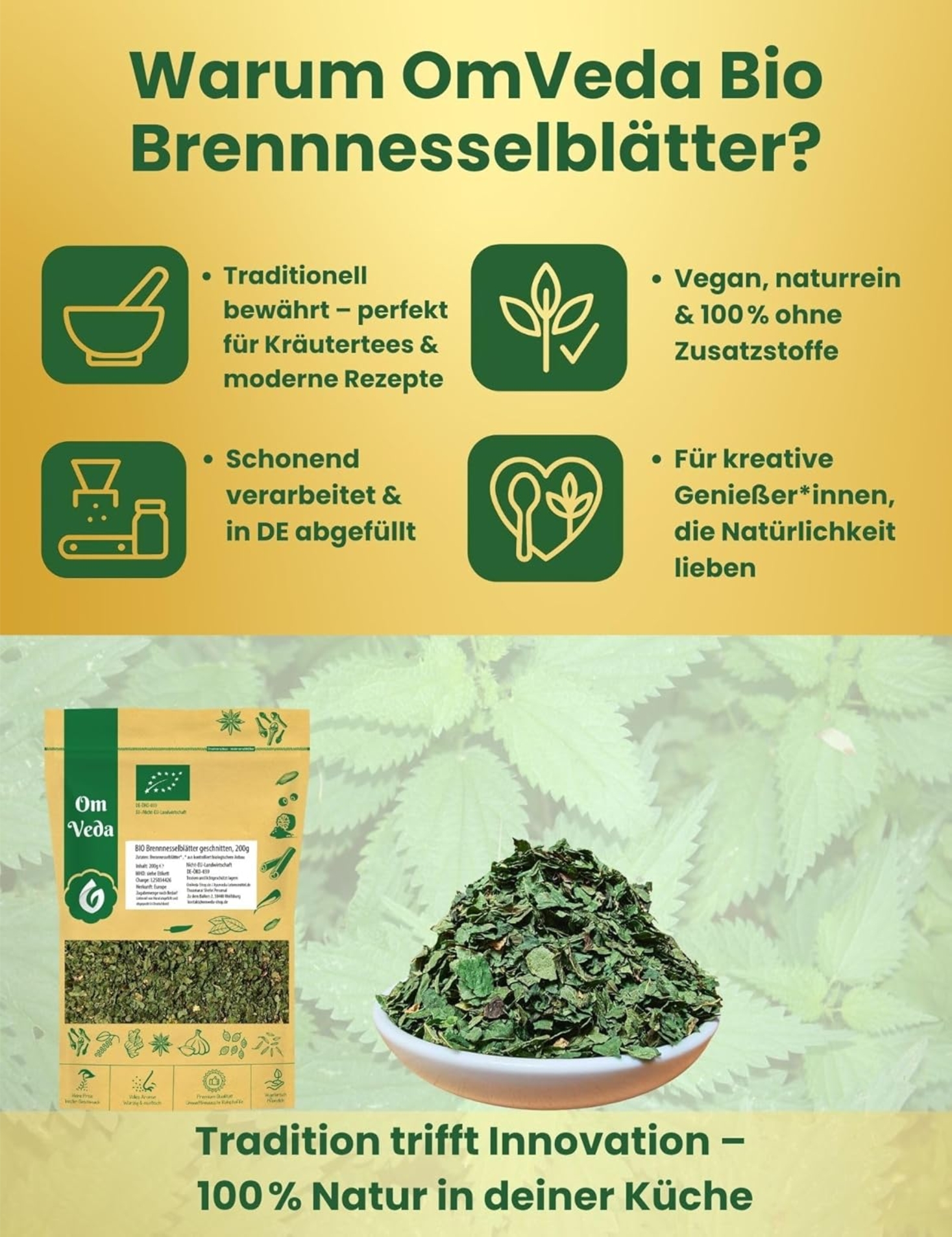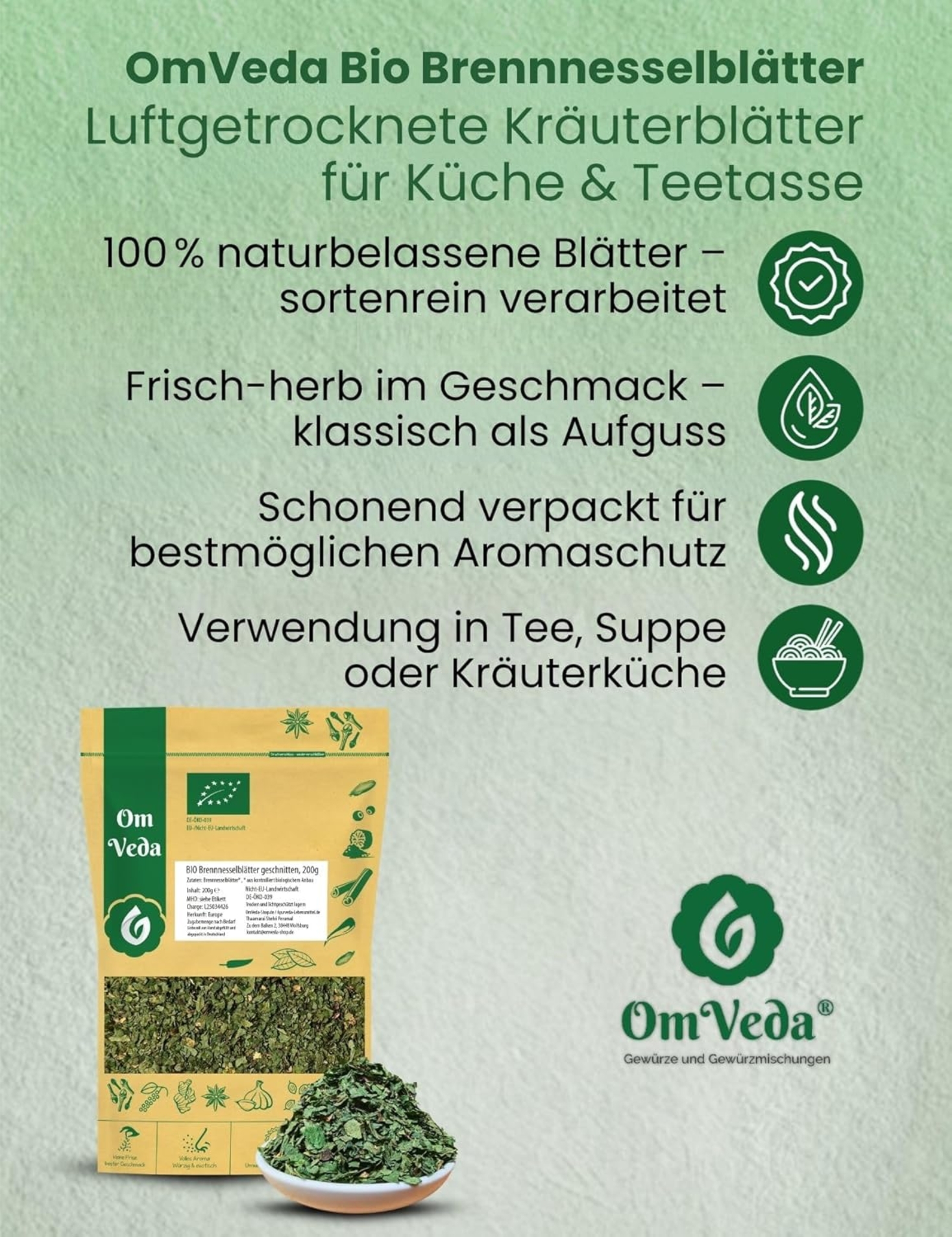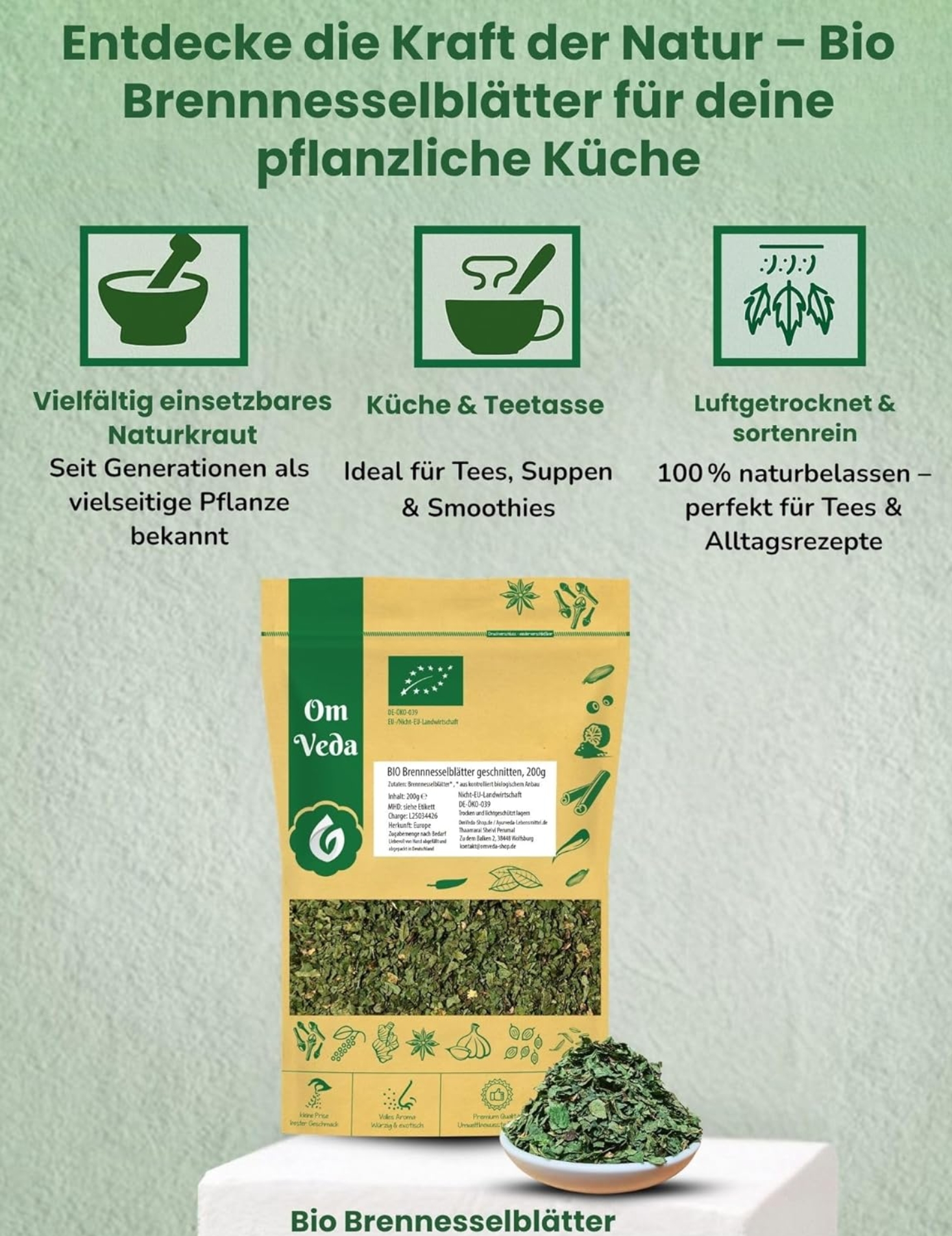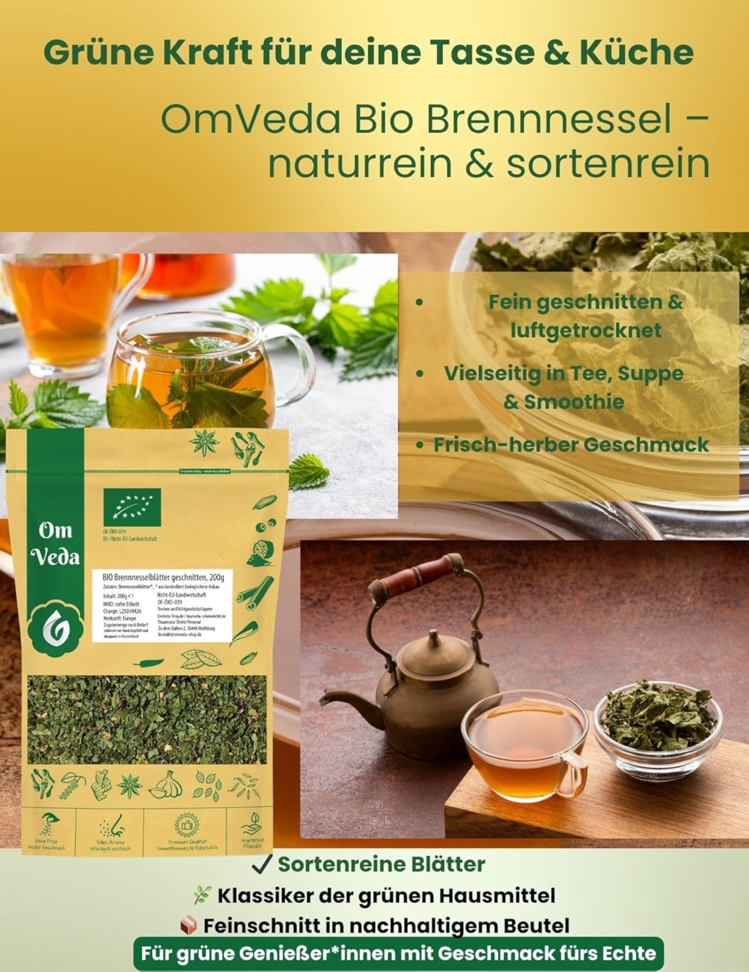 #OmVeda #BioKräuter #Brennnessel #Kräutertee #Naturprodukte #DIYIdeen #VeganLifestyle #NachhaltigLeben