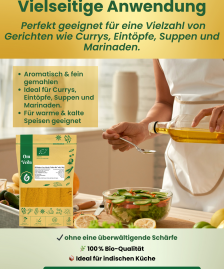 Einfach 1–2 TL in Ihre Gerichte geben und kurz mitgaren – so entfaltet sich das volle Aroma perfekt. Ideal auch zum Verfeinern von Soßen und Dips.