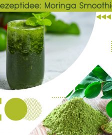 Für einen Moringa Smoothie nehmen Sie eine Handvoll Feldsalat, 1 Handvoll Blattspinat, 1 Apfel, ¼ Salatgurke, ½ gefrorene Banane,500 ml Wasser und 2 gehäufte Teelöffel Moringablattpulver und zerkleinern alles im Mixer. Die gefrorene Banane sorgt für einen Frischekick.