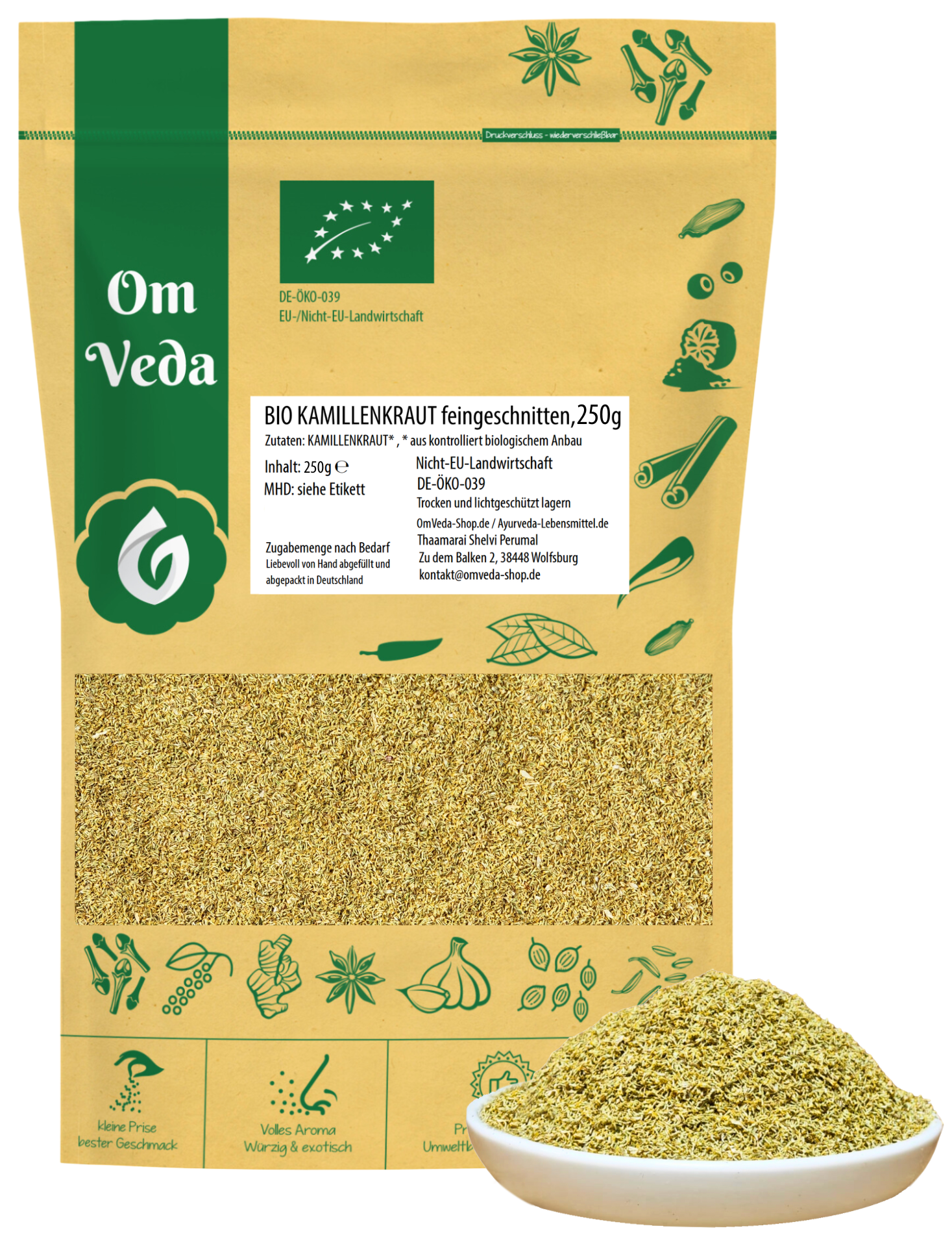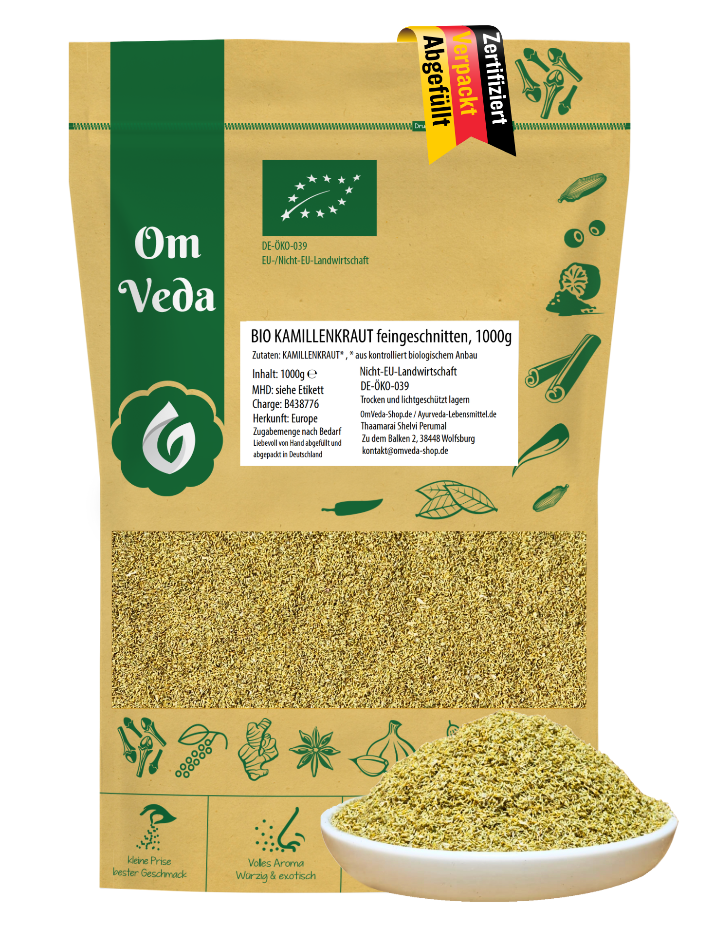 - Großpackung 500g – ideal für Vielnutzer & Kräuterfreunde: Die 500g Vorratspackung ist perfekt für Vieltrinker, Kosmetikhersteller:innen, Spa-Anwendungen oder DIY-Projekte. Ob als Tee, Dampfbad oder Bestandteil selbstgemachter Gesichtsmasken – mit OmVeda Kamillenkraut haben Sie immer ausreichend Vorrat in bester Qualität zur Hand. Die praktische Aromaschutzverpackung garantiert langanhaltende Frische und einfache Entnahme.